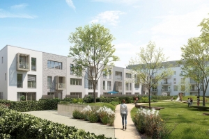 Hier entstehen 120 Mietwohneinheiten in 10 Mehrfamilienhäusern. In der durchgehenden Tiefgarage wird ein volldynamisches Lastmanagementsystem für 196 Fahrzeuge installiert.